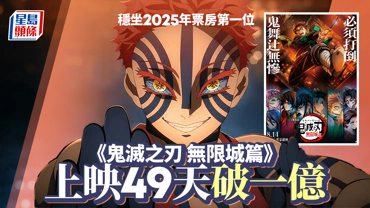 《鬼滅之刃 無限城篇》上映49天破一億  穩坐2025年票房第一位