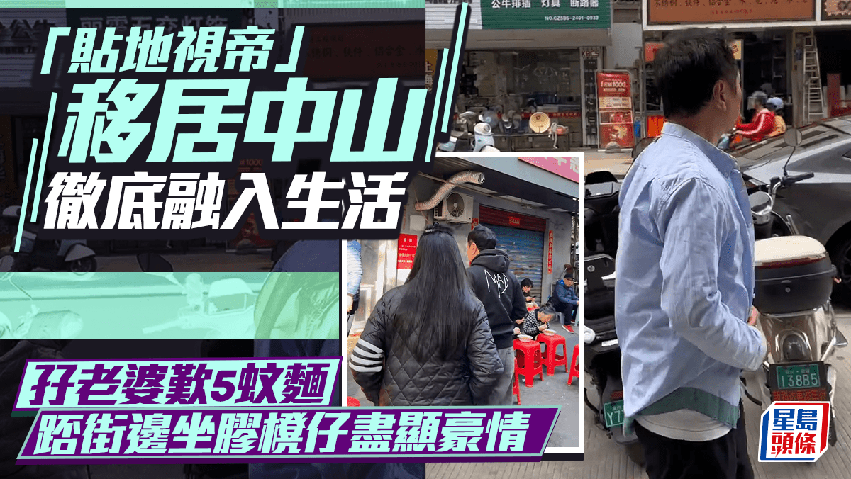 「貼地視帝」移居中山徹底融入生活 帶愛妻坐膠櫈仔踎街邊 擘大髀歎5蚊麵盡顯豪情