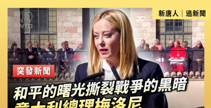 【大纪元2025年10月04日讯】美东时间10月4日,意大利总理乔治亚‧梅洛尼(Giorgia Meloni )在圣方济各庆典上演讲:和平的曙光撕裂战争的黑暗。新唐人、大纪元进行网络重播(中文即时翻译字幕)。