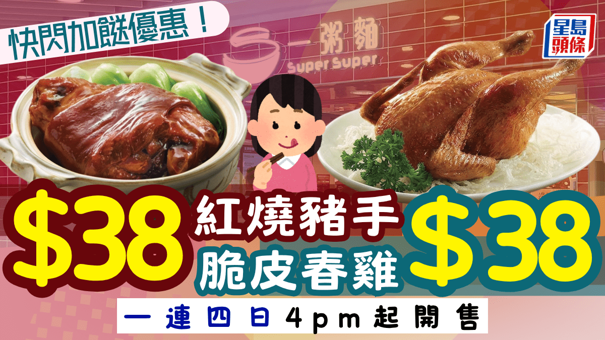 一粥麵限時外賣優惠!$38歎脆皮春雞/紅燒豬手 一連4日下午4時起有售