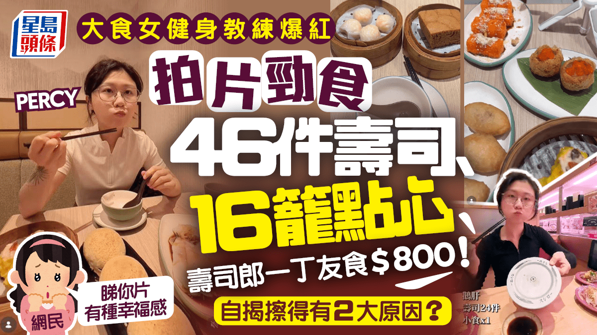 一餐勁食46件壽司/16籠點心?大食女健身教練拍片爆紅 驚人食量獲網民大讚「有種幸福感」 自揭擦得又瘦有2大原因