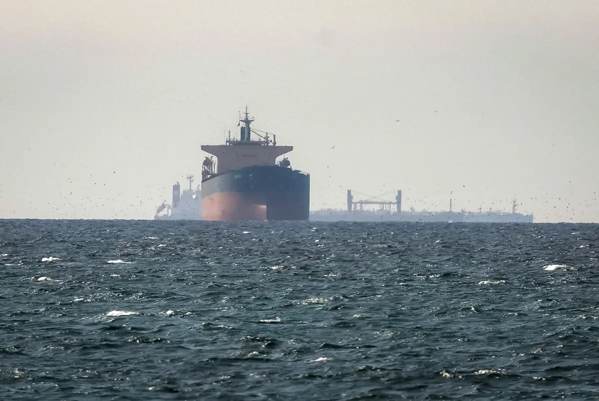 2026年3月11日,在美以对伊战争期间,油轮在霍尔木兹海峡附近的波斯湾航行。照片拍摄于阿联酋北部拉斯海马(Ras al-Khaimah),靠近阿曼穆桑达姆地区边界(Musandam governance)。(Stringer/File Photo)