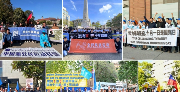 【大纪元2025年10月02日讯】(大纪元记者宁海钟综合报导)中共建政以来祸国殃民,持续在国际上受到声讨。每年的“十一”(中共的所谓“国庆日”,民间称为“国殇日”),各国中共领馆前均出现抗议中共的人群,今年也不例外。愤怒的人群和谴责声形成了一幅幅全球抗共、全民抗暴的画面。