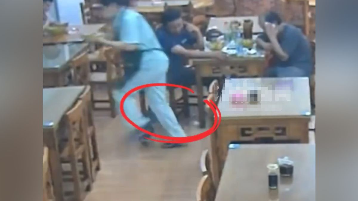 廣東中山一間麵館日前上演離譜一幕,一名醉酒男食客竟公然多次伸腳,企圖絆倒經過的職員及顧客。一名女侍應不幸「中招」,被絆至險些仆倒,手上熱騰騰的麵食應聲打翻,湯汁更濺濕鄰座食客,整個過程被店內「天眼」直擊,惡行斷正。 內地「浪潮新聞」報道,事發於上周六(4日),從網上流傳的閉路電視片段可見,該名男顧客當時正獨自用餐,當一名女侍應捧着麵碗從其身旁走過時,男子竟突然伸出右腳。女侍應猝不及防,整個人向前踉