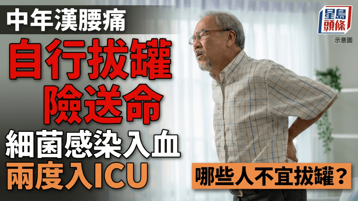 中年漢腰痛自行拔罐止痛險送命 細菌感染入血2度入ICU 哪些人不宜拔罐?