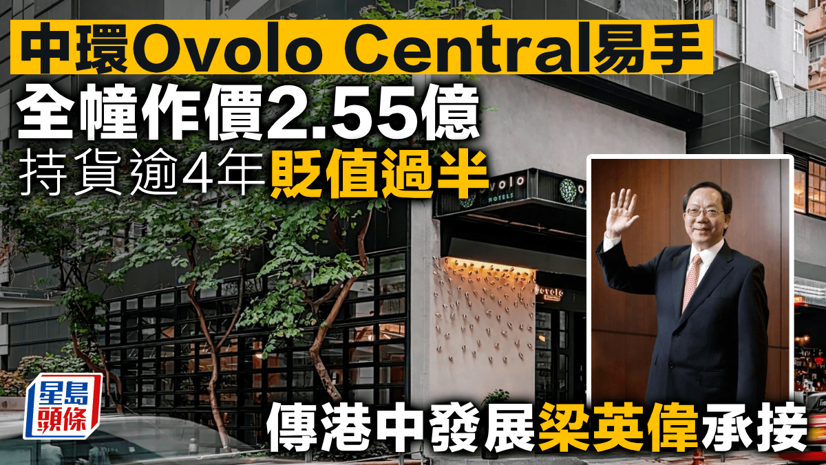 印度富商旗下中環Ovolo Central全幢酒店,今年中推出放售,市場消息透露,該全幢剛以2.55億易手,持貨逾4年貶值51%。