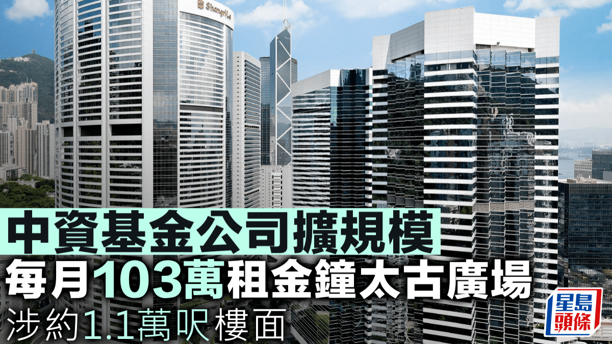 中資基金公司擴規模 每月103萬租金鐘太古廣場 涉約1.1萬呎樓面