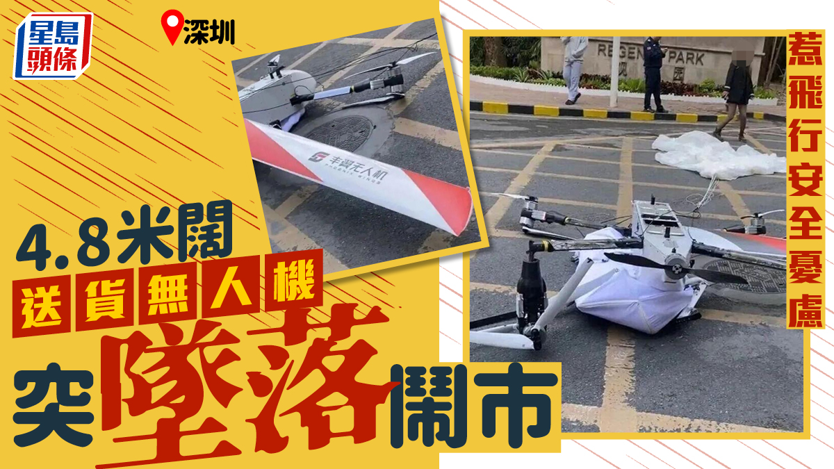 低空經濟︱深圳4.8米闊送貨無人機鬧市墜落  網民:幸無人受傷