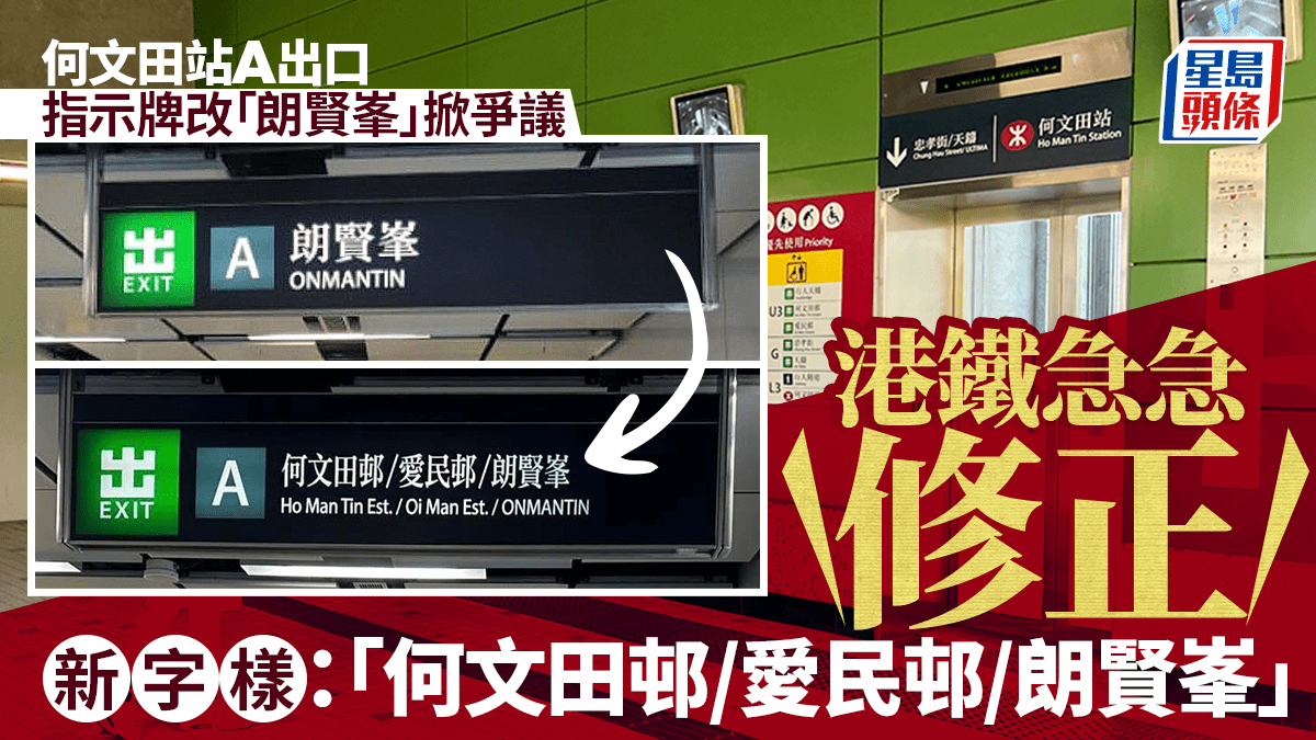 何文田站A出口指示牌改「朗賢峯」捱批 港鐵急補鑊 加回「何文田邨/愛民邨」
