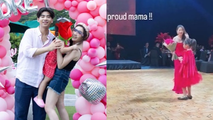 何超盈公開的照片,見到6歲的Audrey有份演出,在慈善晚宴上跳舞,何超盈自豪留言:「Super proud mama!!」為女兒感到驕傲。何超盈在場內又與不少人合照,更感謝搞手讓女兒在慈善籌款上出力。
