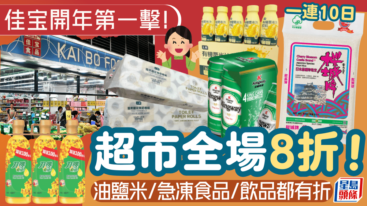 佳宝超市開年第一擊!一連10日全線分店8折優惠 油鹽米/急凍食品/飲品都有折
