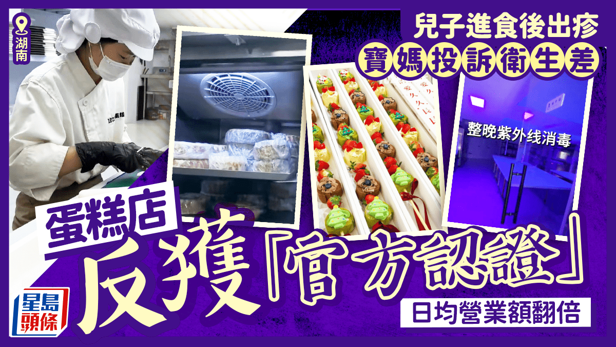 湖南有家長懷疑孩子出疹嘔吐,與一間蛋糕店有關,於是不斷投訴指店方衛生有問題。但當地市監局介入突擊檢查,發現店方衛生嚴謹,用料新鮮,反而變成獲得官方認證,蛋糕店因禍得福,急增近萬粉絲,營業額翻倍。 日營業額翻倍 據「海報新聞」報道,湖南長沙有一名女子,指孩子早前吃了「1022號蛋糕」店的食品後,皮膚出疹及嘔吐,認為是蛋糕店出品不衛生造成,於是四出投訴。4月初,涉事蛋糕店也因不明原因被推上當地的消費者