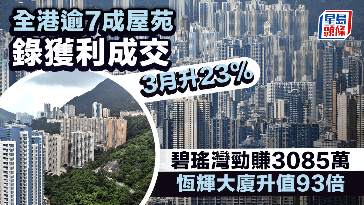 全港逾7成屋苑錄獲利成交 3月升23% 碧瑤灣勁賺3085萬 恆輝大廈升值93倍
