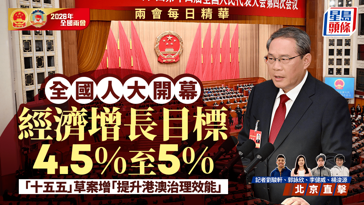兩會每日精華|全國人大開幕 經濟增長目標4.5%至5% 「十五五」草案提出「提升港澳依法治理效能」