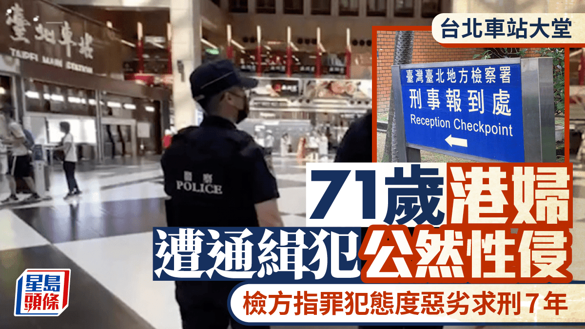 台北車站本月9日發生駭人性侵案,1名44歲男通緝犯在車站大堂,將醉倒的香港籍女遊客拖到牆邊性侵10分鐘才有人制止。台北地檢署今(28)日依乘機性交、公然猥褻罪起訴疑犯,指其在偵查中翻供否認犯行,犯後態度惡劣,具體求刑7年。多家台媒披露,被性侵的香港女遊客現年71歲。
