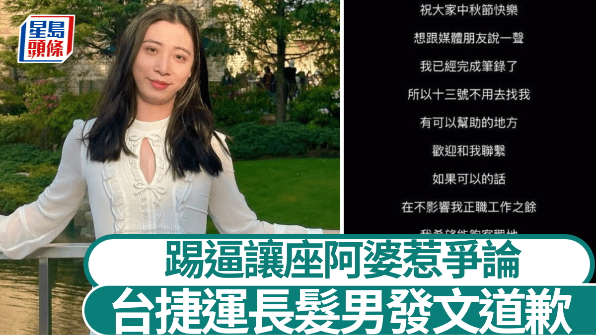 台灣捷運長髮男︱IG發道歉文透露案情  曾踢逼讓座阿婆惹爭論