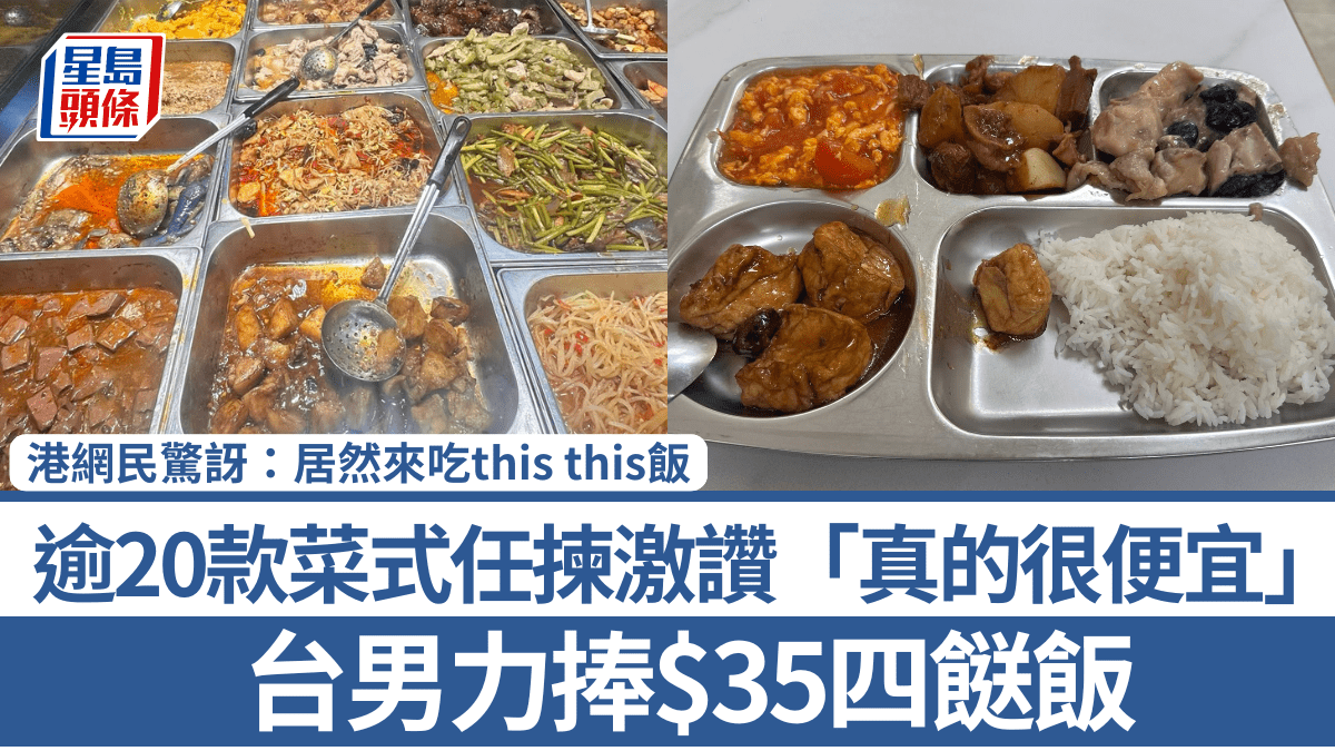 台男力捧$35四餸飯! 逾20款菜式任揀激讚「真的很便宜」 港網民驚訝:居然來吃this this飯