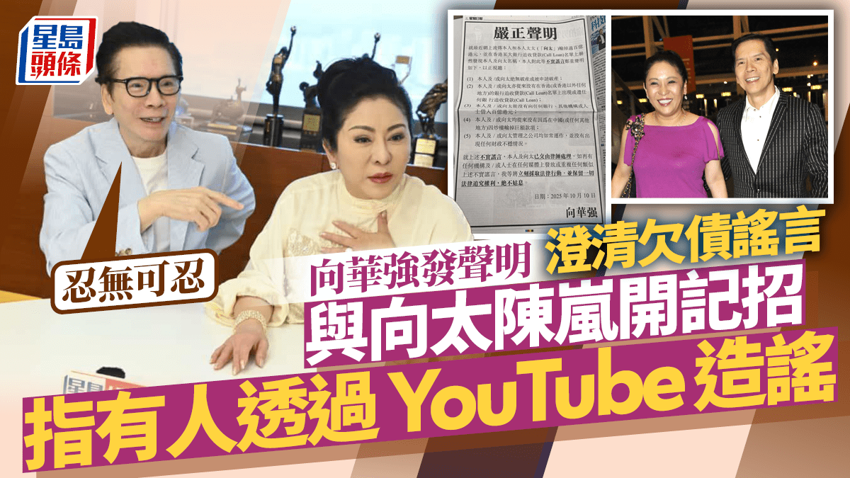 向華強發聲明澄清欠債謠言    與向太陳嵐開記招指有人透過YouTube造謠:忍無可忍