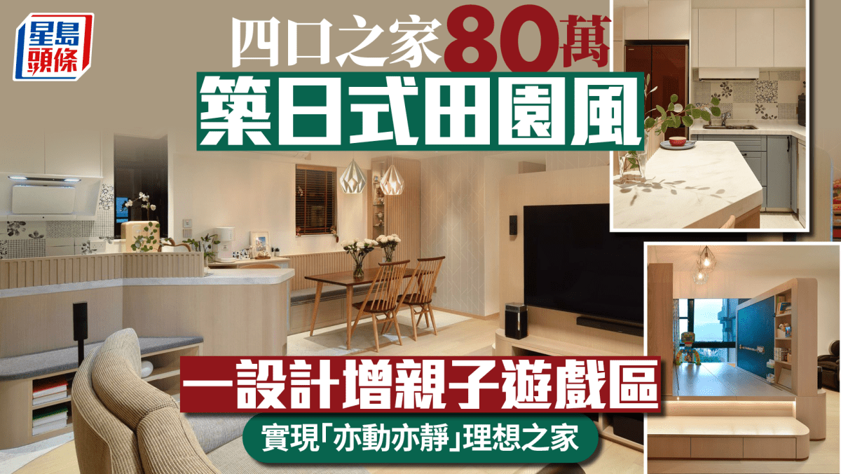 今次參觀黃金海岸一個約720平方呎的單位,屋主為一家四口,找來Viz Design設計公司,斥資80萬重新打造家居空間。這個樓齡20多年的單位為三房兩廳間隔,設計師大膽拆除梗廚隔牆,打造全開放式生活空間,並將木系、日式和田園自然風巧妙融合,更在客廳增加兒童遊戲區,回應屋主偏愛自然、舒適且適合親子互動的生活需求。