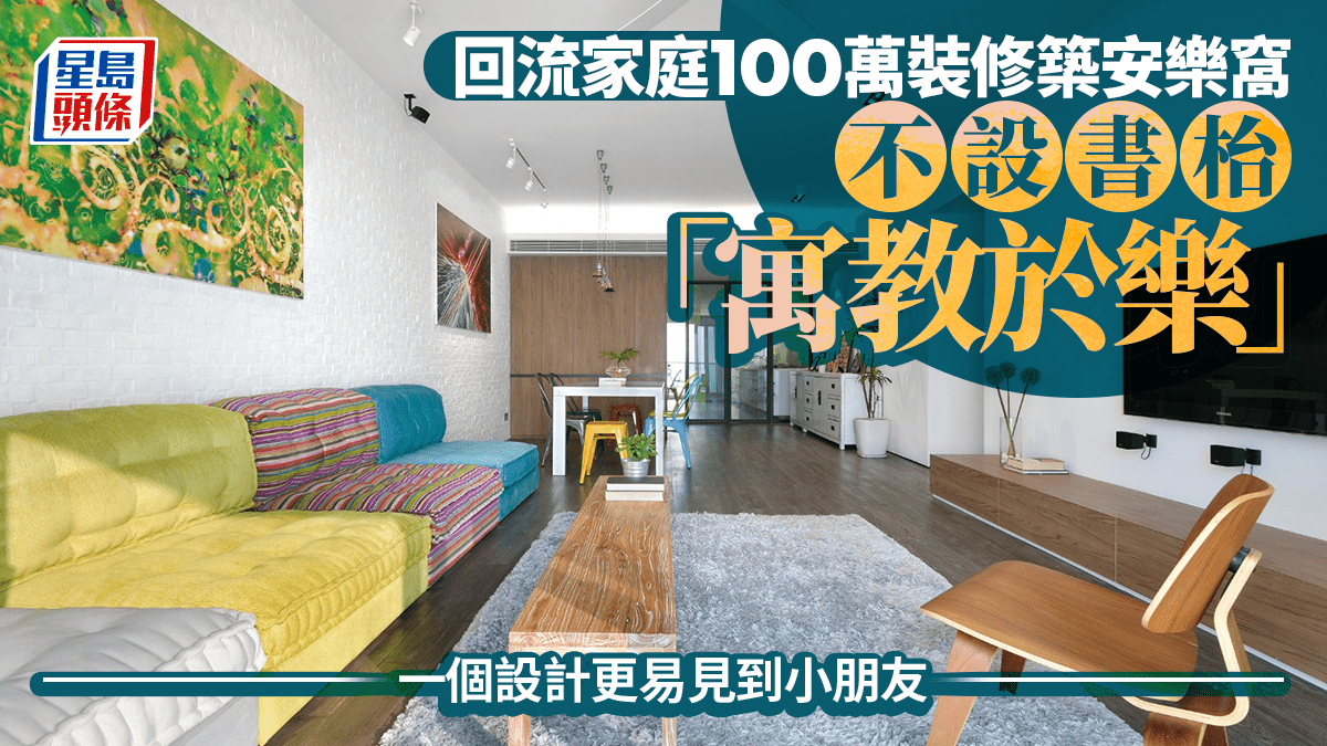 參觀位於貝沙灣一個1,600方呎的4房單位,戶主是回流華僑,喜愛自然舒適的居住空間,更支持「寓教於樂」的養育方式,一家五口連兩位工人,合共有7人同住,因此找來設計公司Viz Design,耗資100萬元以打造一間兼備充足玩樂空間及簡約自然的安樂窩。