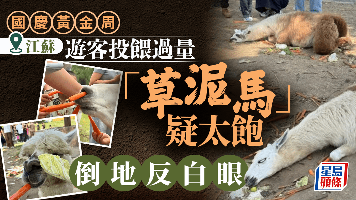 國慶黃金周︱遊客投餵過量 羊駝吃撐倒地反白眼