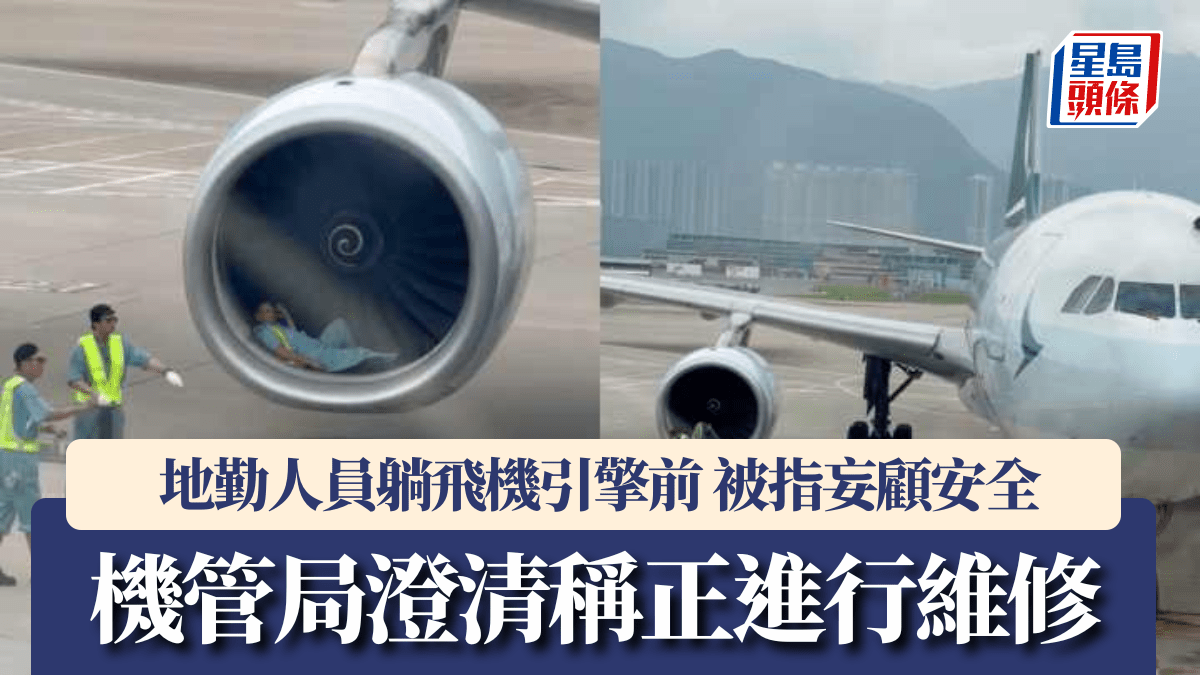 地勤人員躺飛機引擎前 網民質疑小休妄顧安全 機管局澄清稱正進行維修