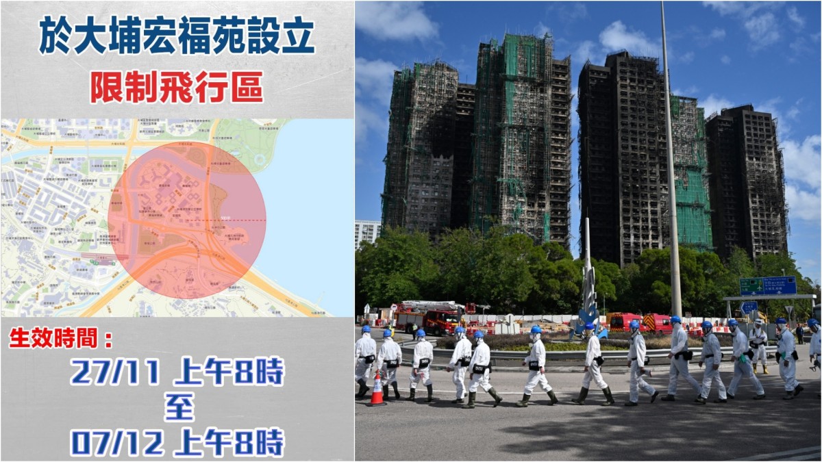 大埔宏福苑五級火|警方延長無人機限飛區一星期 至12月7日