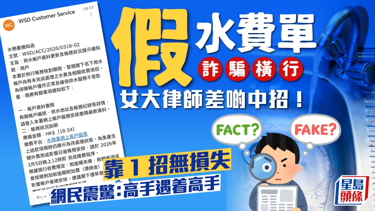 大律師險中「假水費單」詐騙!靠1招力保不失 網民震驚:高手遇着高手