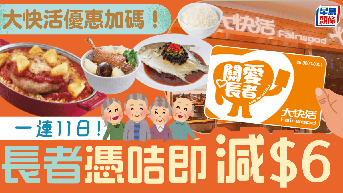 大快活長者優惠加碼!關愛長者咭一連11日減$6 長者咭/樂悠咭均可申請