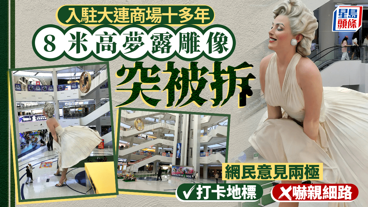 大連8米高夢露雕像入駐十年被撤 網友:確實容易嚇到小朋友