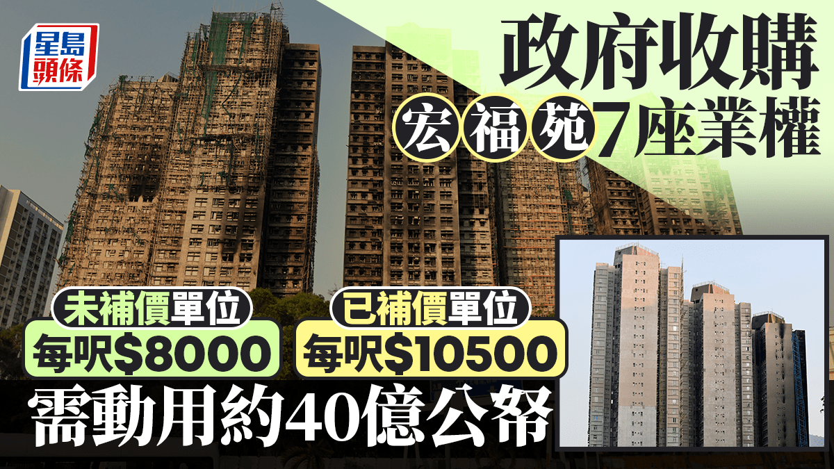 宏福苑安置|政府收購7座業權 未補價每呎$8000 已補價$10500 總收購價68億