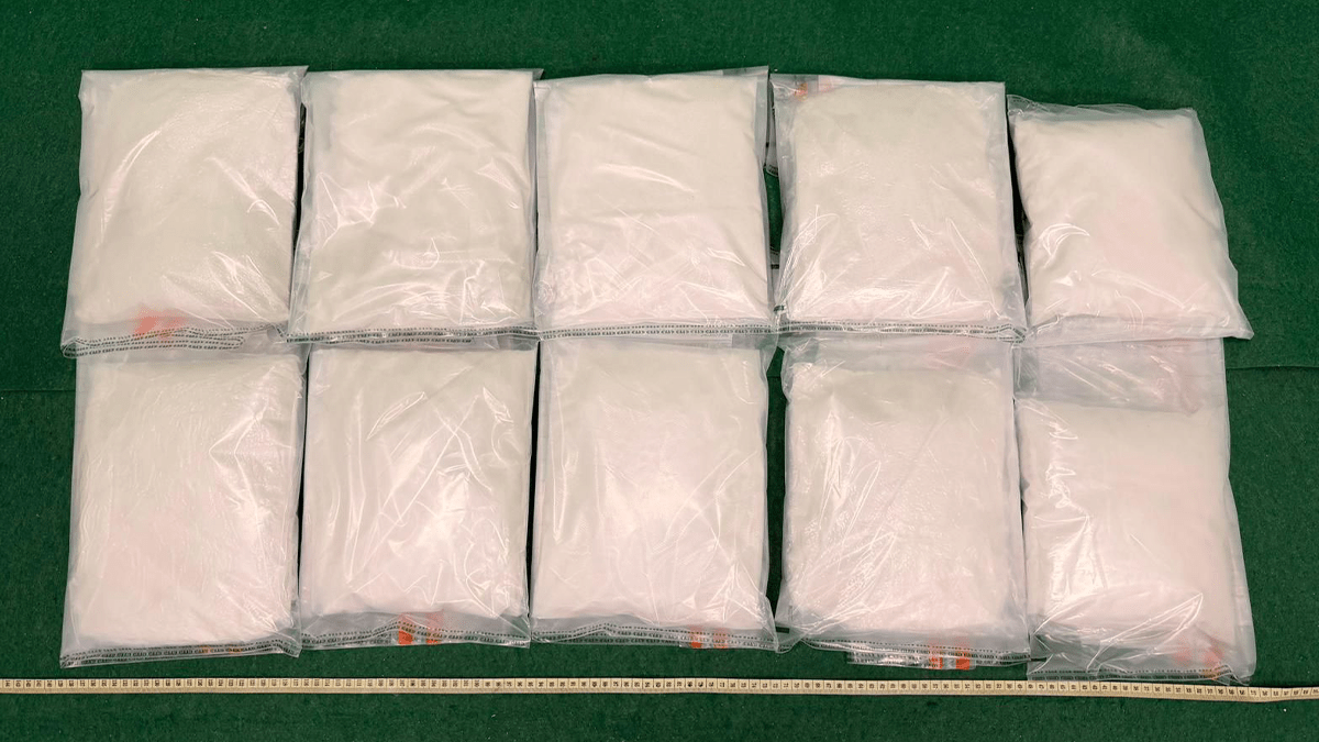 海關檢獲約10公斤氯胺酮,估計市值約312萬元。政府新聞處圖片