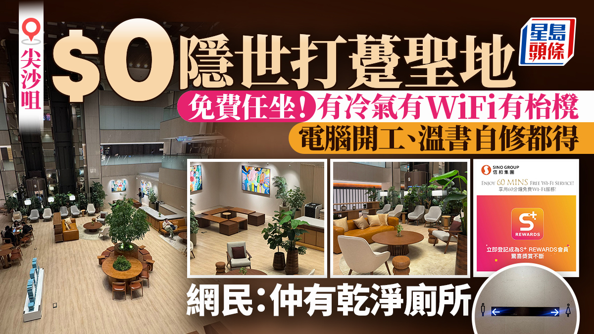 尖沙咀隱世「靚位」$0任坐!免費WiFi+舒服枱櫈 帶電腦工作/溫書都得 網民:仲有乾淨廁所