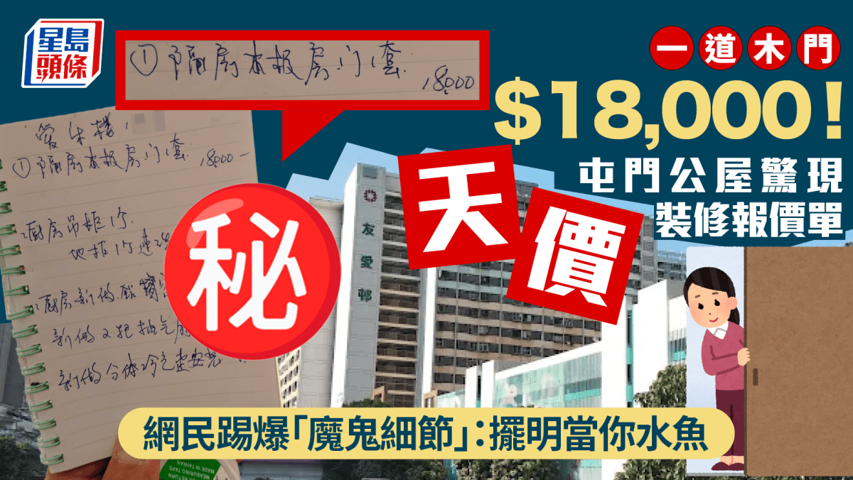 Home » 屯門公屋驚現「天價」裝修報價單:一道木門$18,000!網民踢爆「魔鬼細節」:擺明當你水魚|Juicy叮
