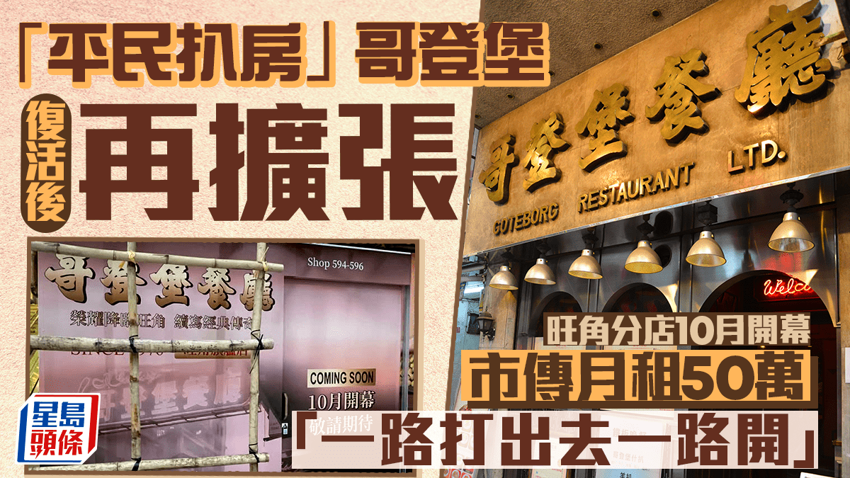 屹立土瓜灣近50年、有「平民扒房」之稱的哥登堡餐廳去年一度結業,其後由舊班底重組在原址「復活」。近日該扒房即將於旺角開設分店,計劃於10月開幕。哥登堡餐廳負責人余先生向《星島頭條》表示,選擇在旺角開分店是由於人流旺盛且名氣大,若日後計劃將其作為旗艦店,旺角無疑是較佳的選擇,未來會繼續擴張業務,「想在旺角開咗先,一路打出去一路開」。