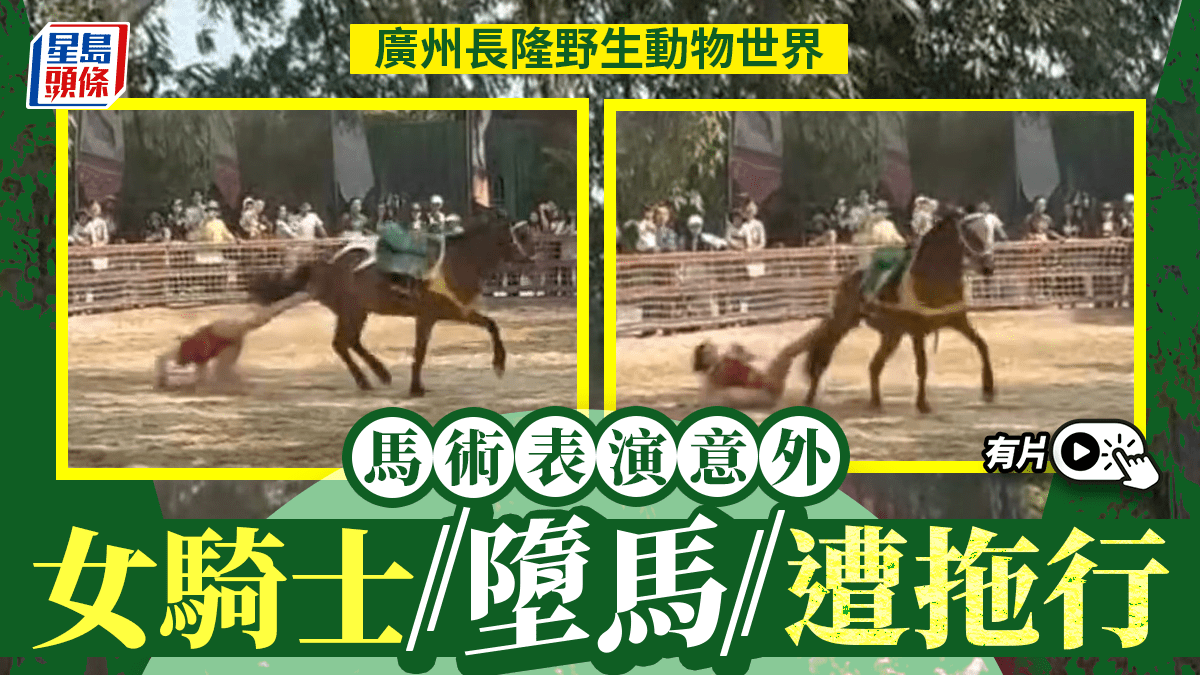 廣州長隆︱騎士表演爆驚險意外 女子墮馬遭拖行︱有片