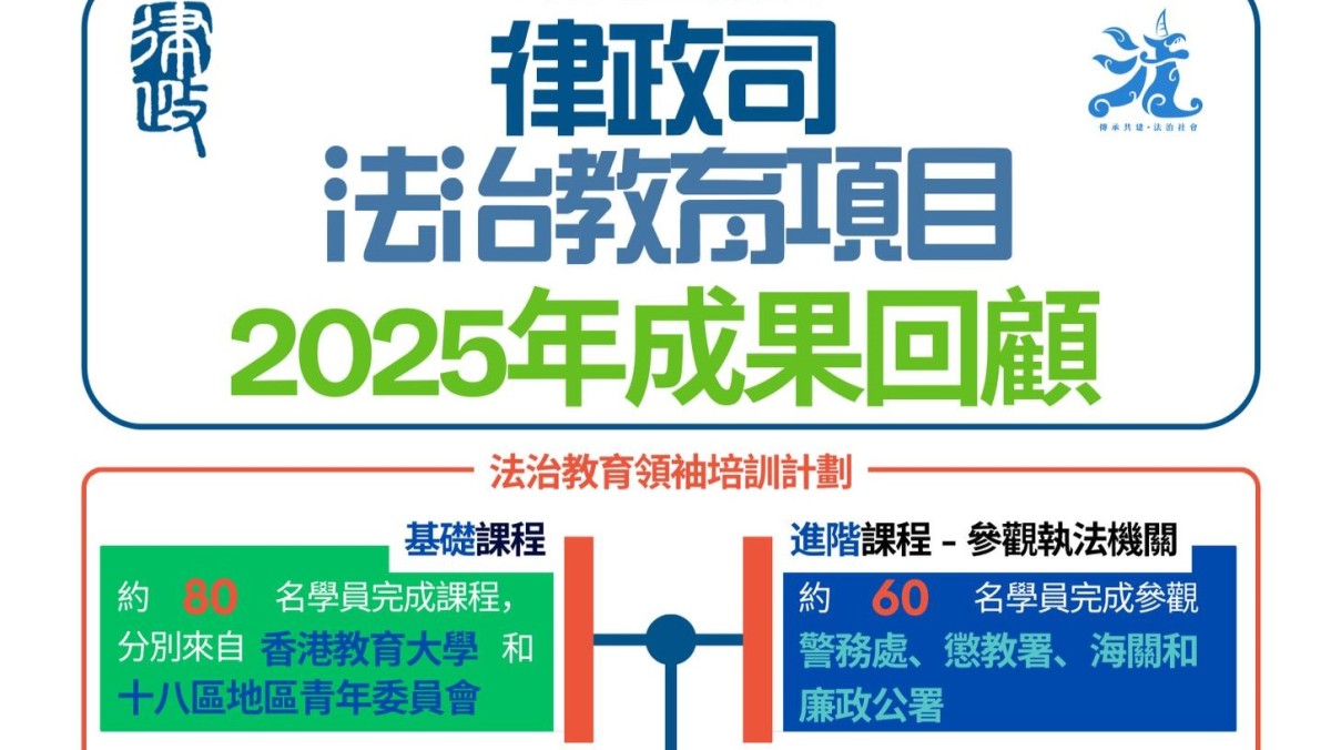 律政司總結2025年法治教育成果 法治教育領袖培訓計劃碩果累累