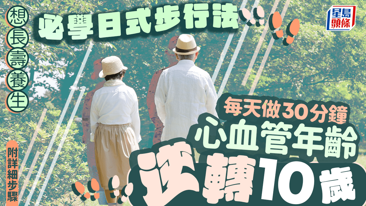 【長壽運動】多步行可減肥、防心臟病,不過要怎樣步行才最有效?有研究指,一種由日本專家研發的「日式步行法」,可有效降低血糖並提升身體的帶氧能力、心血管力量,定期進行「日式步行法」,心血管更相當於年輕10歲。