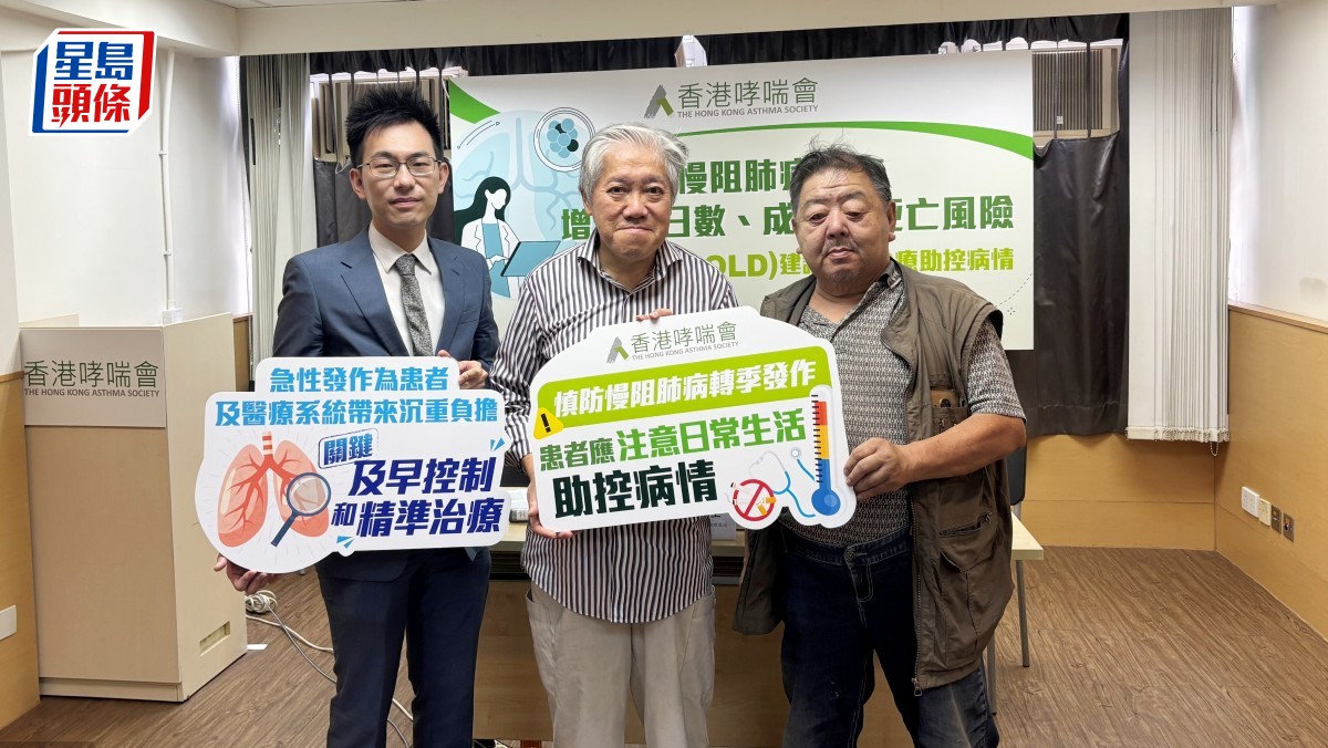 香港哮喘會引述衞生防護中心2024年數據指出,包括慢阻肺病在內的慢性下呼吸道疾病,位列本港主要死因的死亡人數第九位,年間導致1,092人死亡。該會指,慢阻肺病為本港醫療系統帶來沉重負擔,患者的急性發作入院,帶來潛在的醫療開支,3年間累積高達12.59億港元。