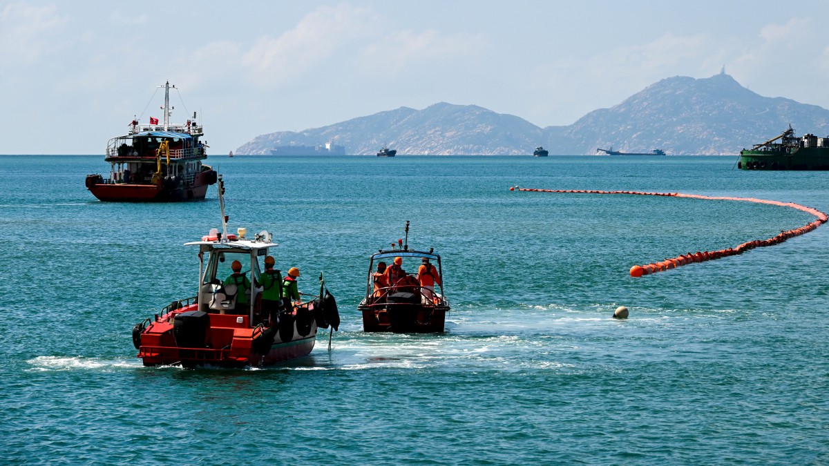 多個政府部門今日(10月15日)上午在南丫島下尾灣對開海面舉行周年海上污染事故聯合演習,測試相關政府部門在香港水域內發生海上溢油及溢漏有害有毒物質事故時的應變能力,行動代號為「油演2025」及「有害有毒物質溢漏演習2025」。