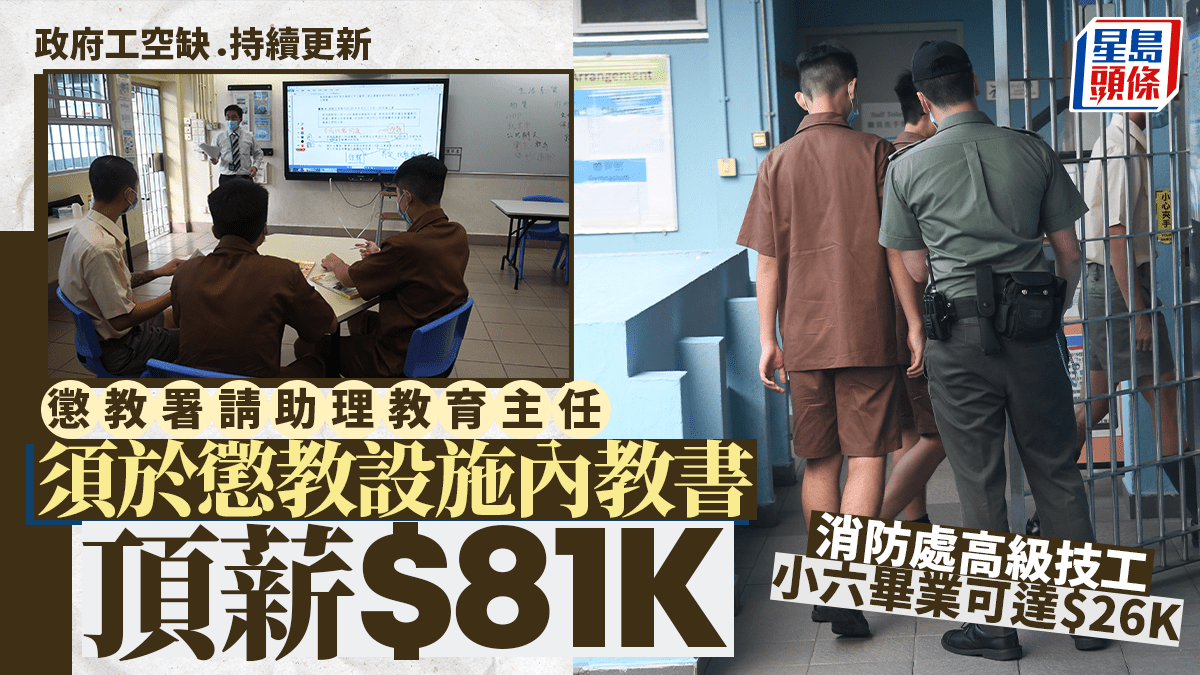 政府工空缺2026︱懲教署請助理教育主任頂薪$81K 消防處高級技工小六畢業可達$26K