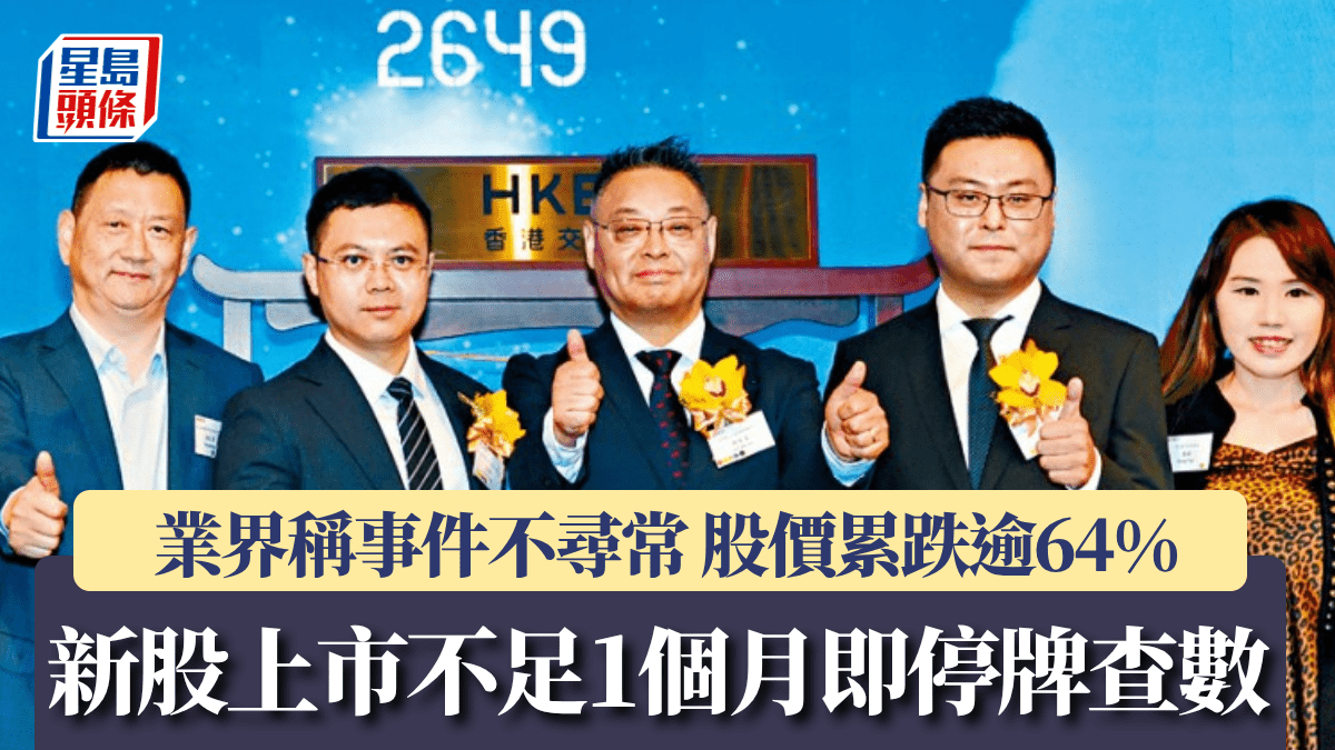 新股上市不足1個月即停牌查數 業界稱事件不尋常 股價累跌逾64%