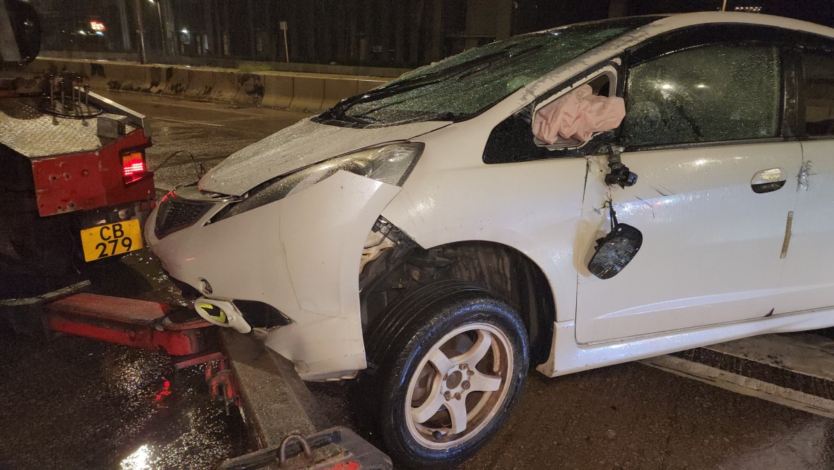 新蒲崗私家車撞路牌四輪朝天 男司機一度被困獲救