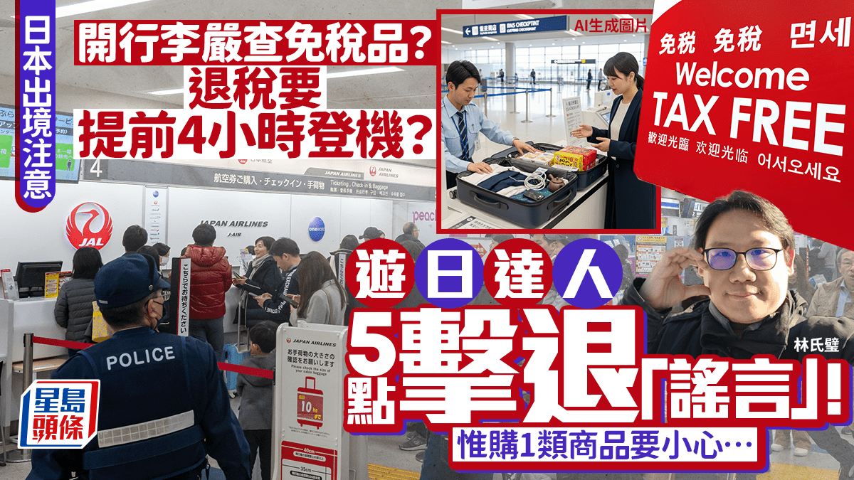 對於日本明年改為機場退稅後,旅客是否需要預早Check-in,而且海關又是否會嚴厲執行開行李檢查的程序,林氏璧於帖文開首先表示「答案是否定的」,並清楚以5點擊退這「謠言」: