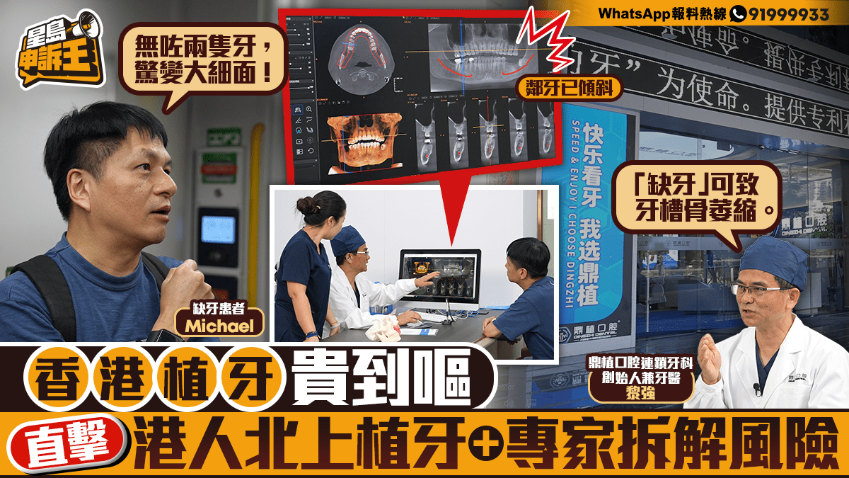 Michael曾在香港查詢植牙方案,惟政府牙科服務不涵蓋植牙手術,而私家診所收費動輒數萬元,令他十分卻步,於是他萌生北上睇牙的念頭。Michael稱,因價錢相宜,且越來越多港人北上睇牙,感覺內地牙醫較為「工多藝熟」,但另一邊廂,他亦擔心植牙後一旦出現問題,不知內地牙醫會如何跟進。