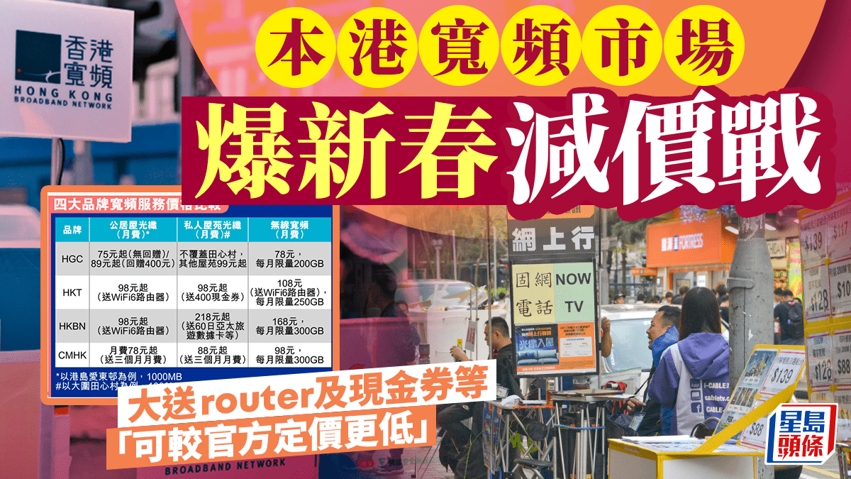 本港寬頻市場爆新春減價戰 大送router及現金券等 「可較官方定價更低」