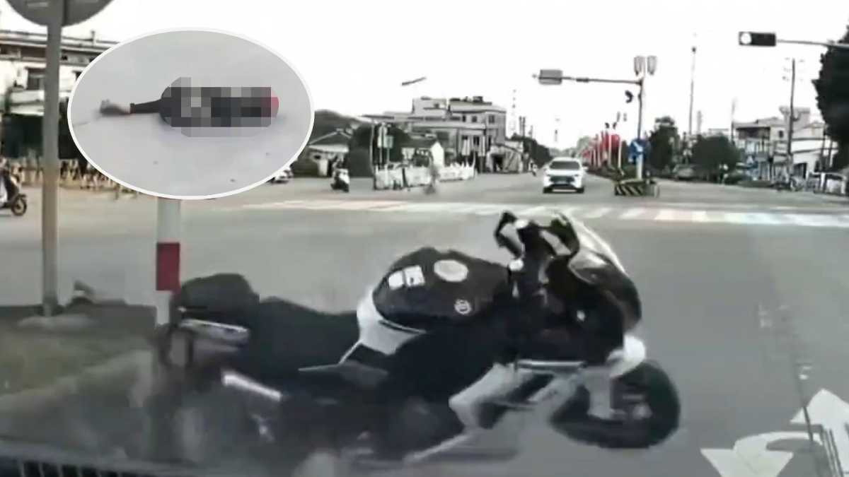 網上流傳影片所見,電單車司機被拋出後,撞向花槽,電單車亦彈飛直撞對面的車輛。