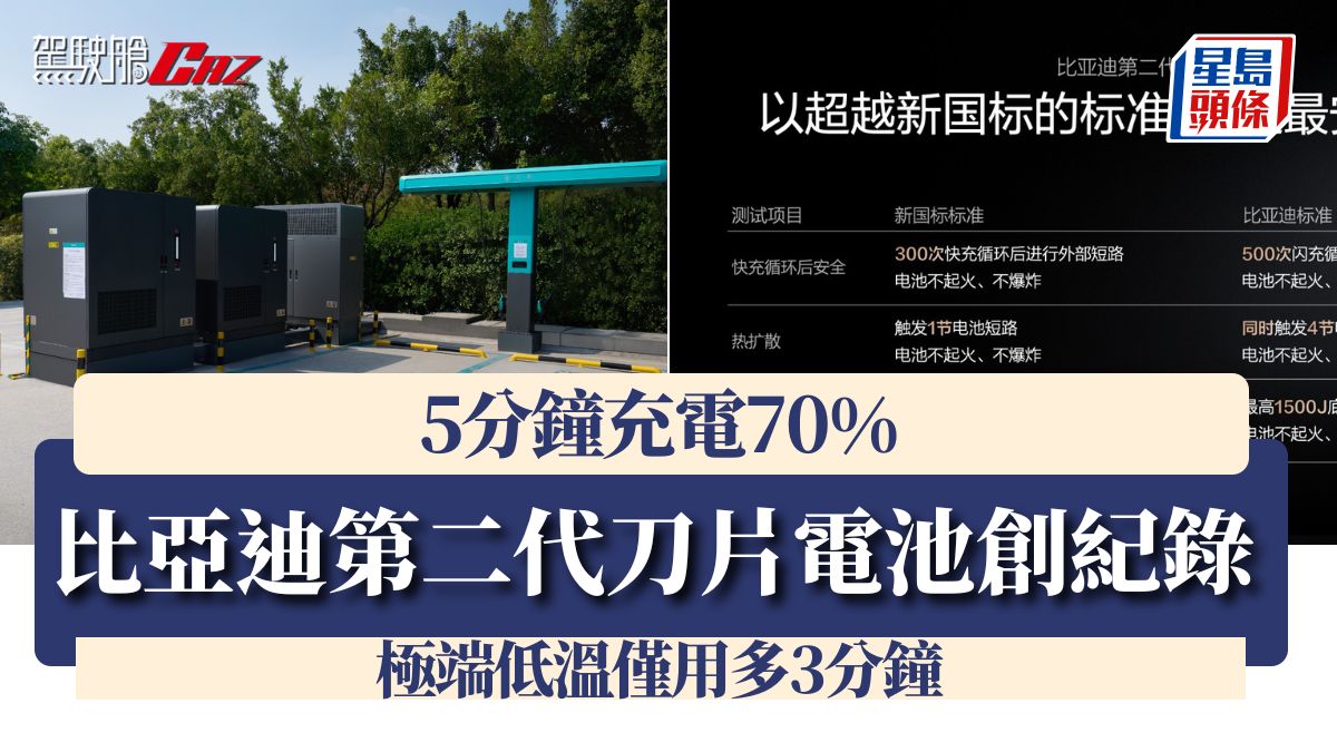 比亞迪第二代刀片電池創紀錄 5分鐘充電70% 極端低溫僅用多3分鐘