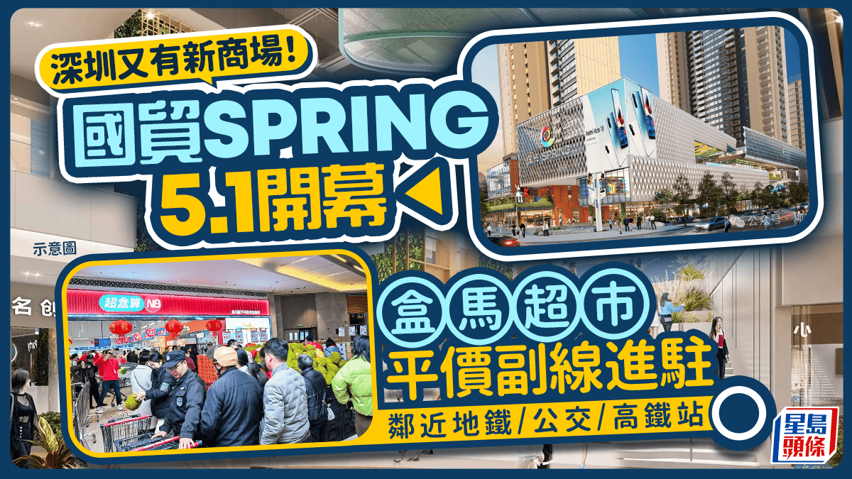 深圳新商場國貿SPRING 5.1開幕!盒馬超市平價副線「超盒算NB」進駐 鄰近地鐵/高鐵站