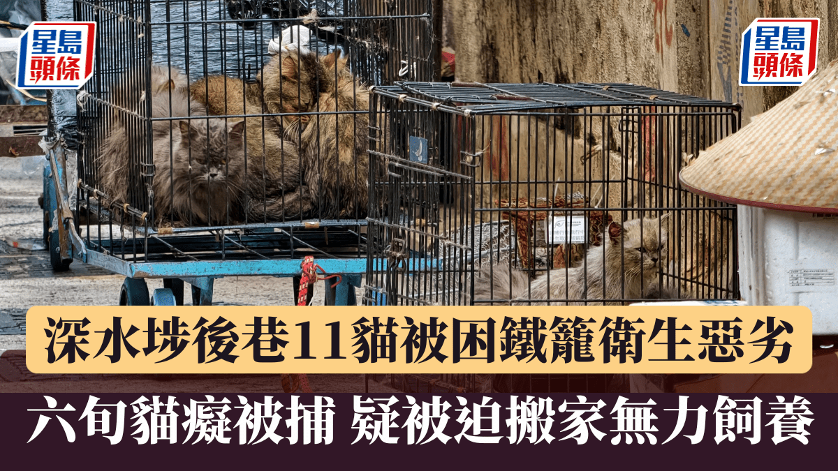 深水埗後巷11病貓被困鐵籠1貓死亡 警拘貓主及南亞漢 疑被迫搬家無力飼養